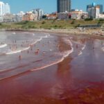 Mar com cor de sangue surpreende veranistas em praias da Argentina